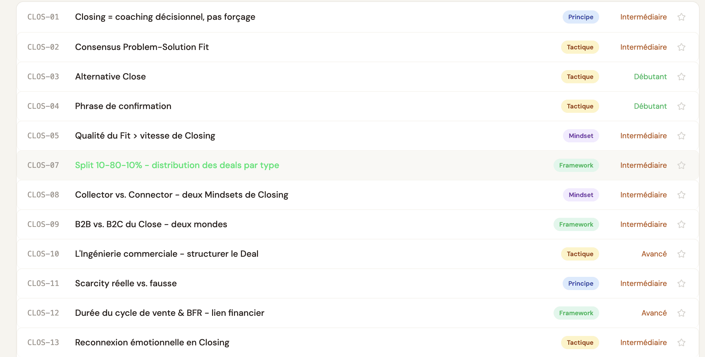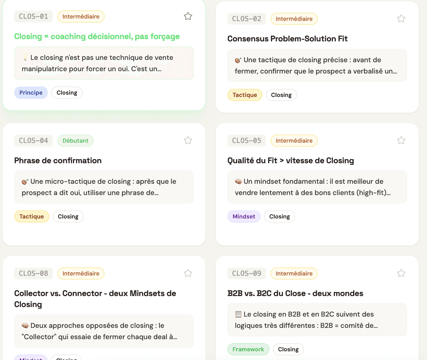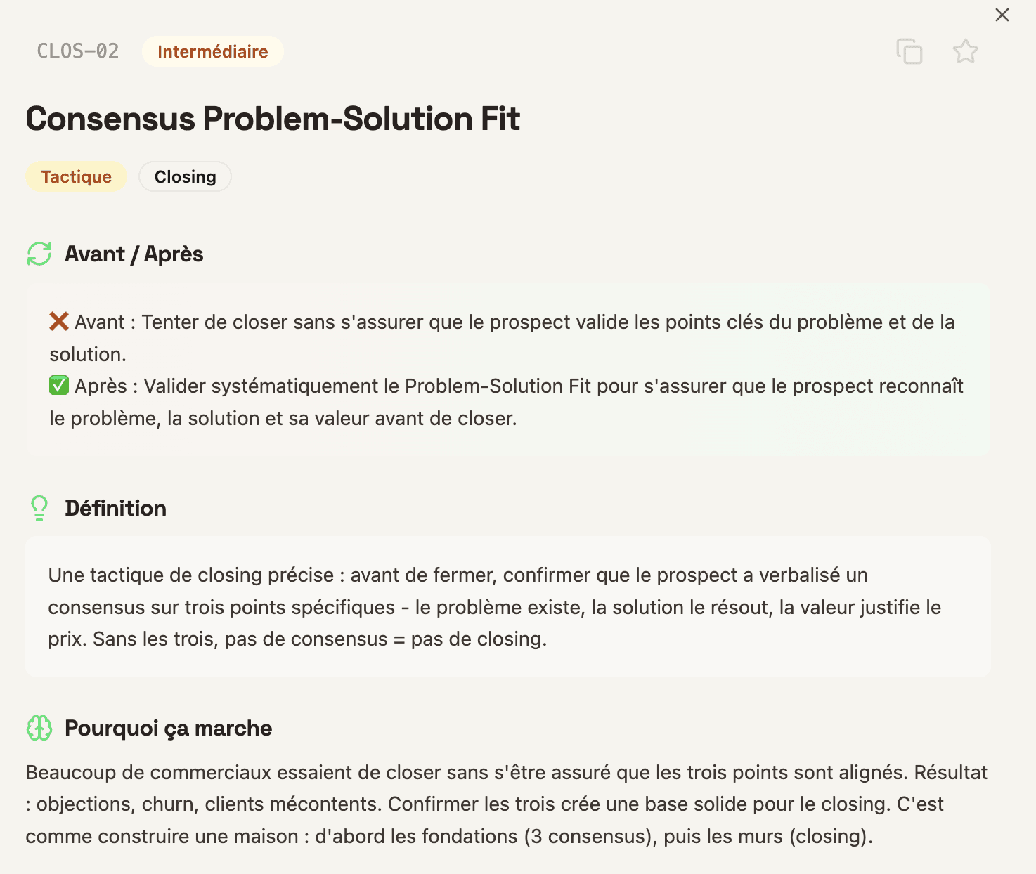 Chaque tactique est conçue pour être utilisée immédiatement. Un clic pour copier la fiche entière.